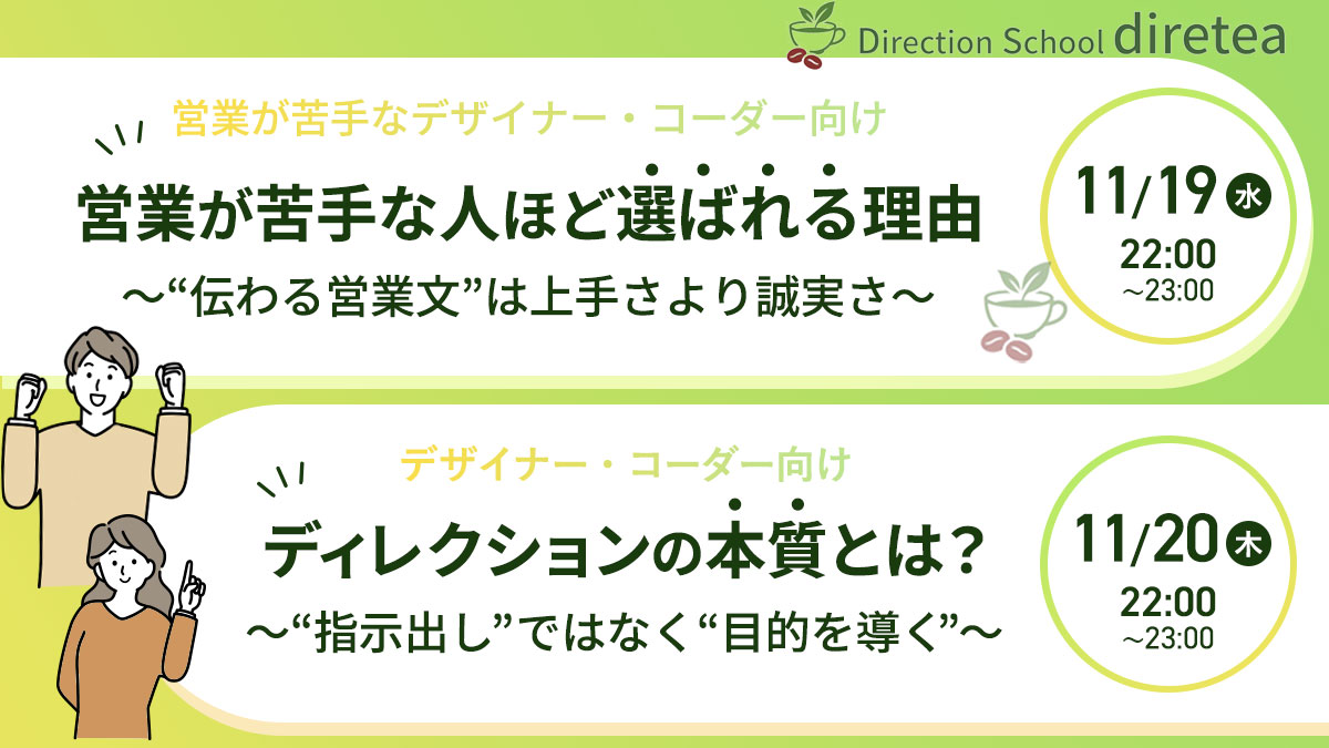 【2日連続イベント開催】営業 × デザイン × ディレクションの学びを深める2日間|11/19(水)・11/20(木)